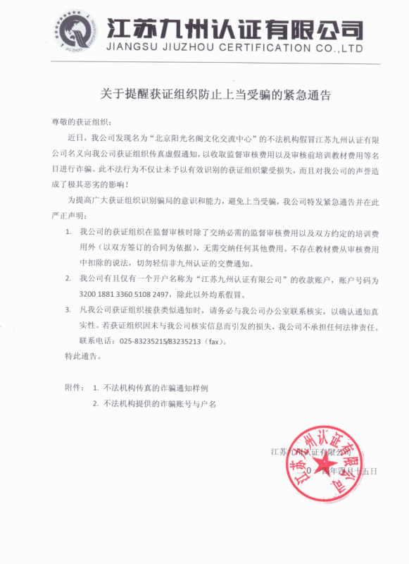 版權(quán)所有 All Rights Reserved 江蘇九州認(rèn)證有限公司